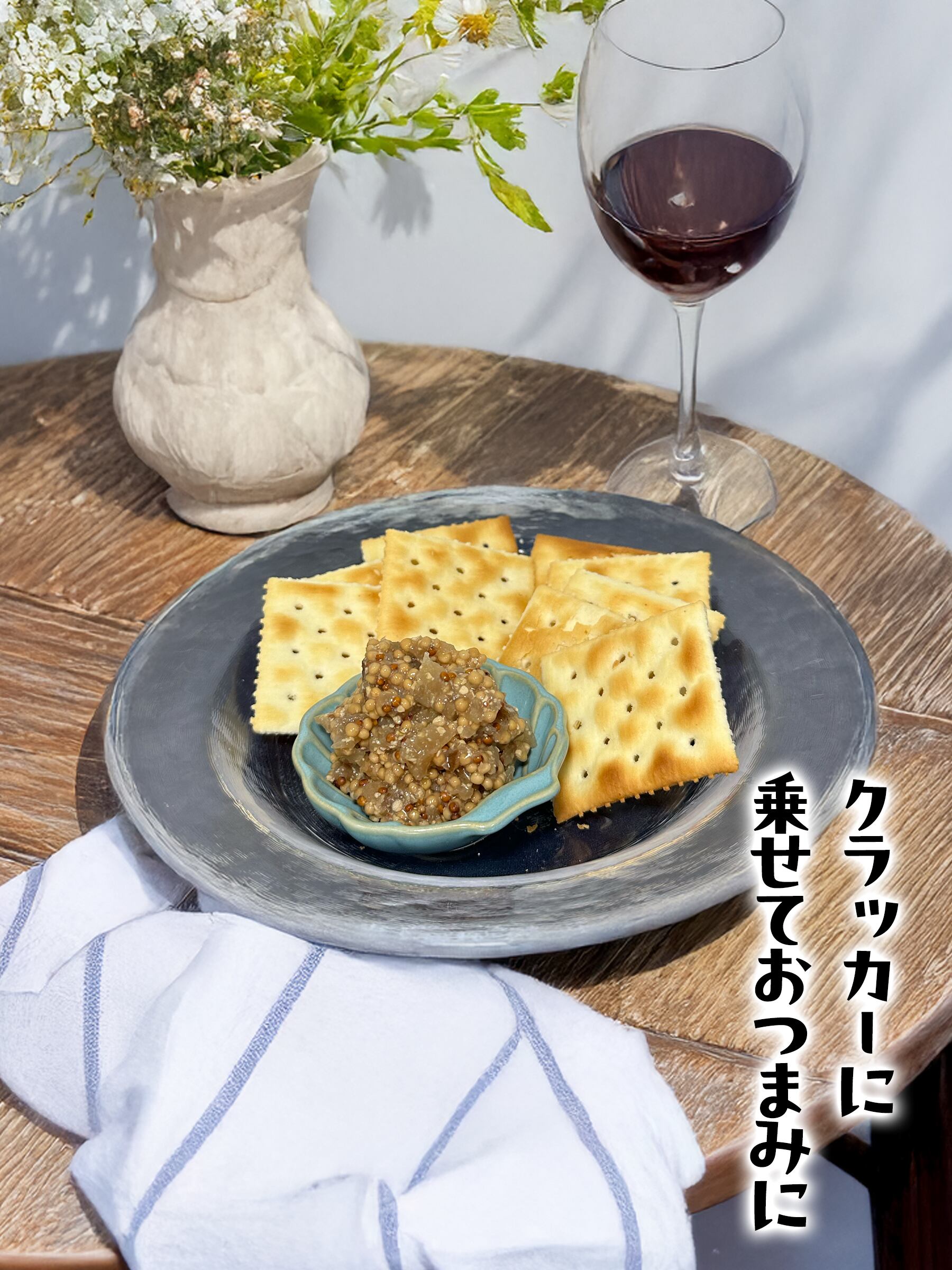 プチプチの粒マスタードといぶりがっこの食感がクセになる、新商品です。