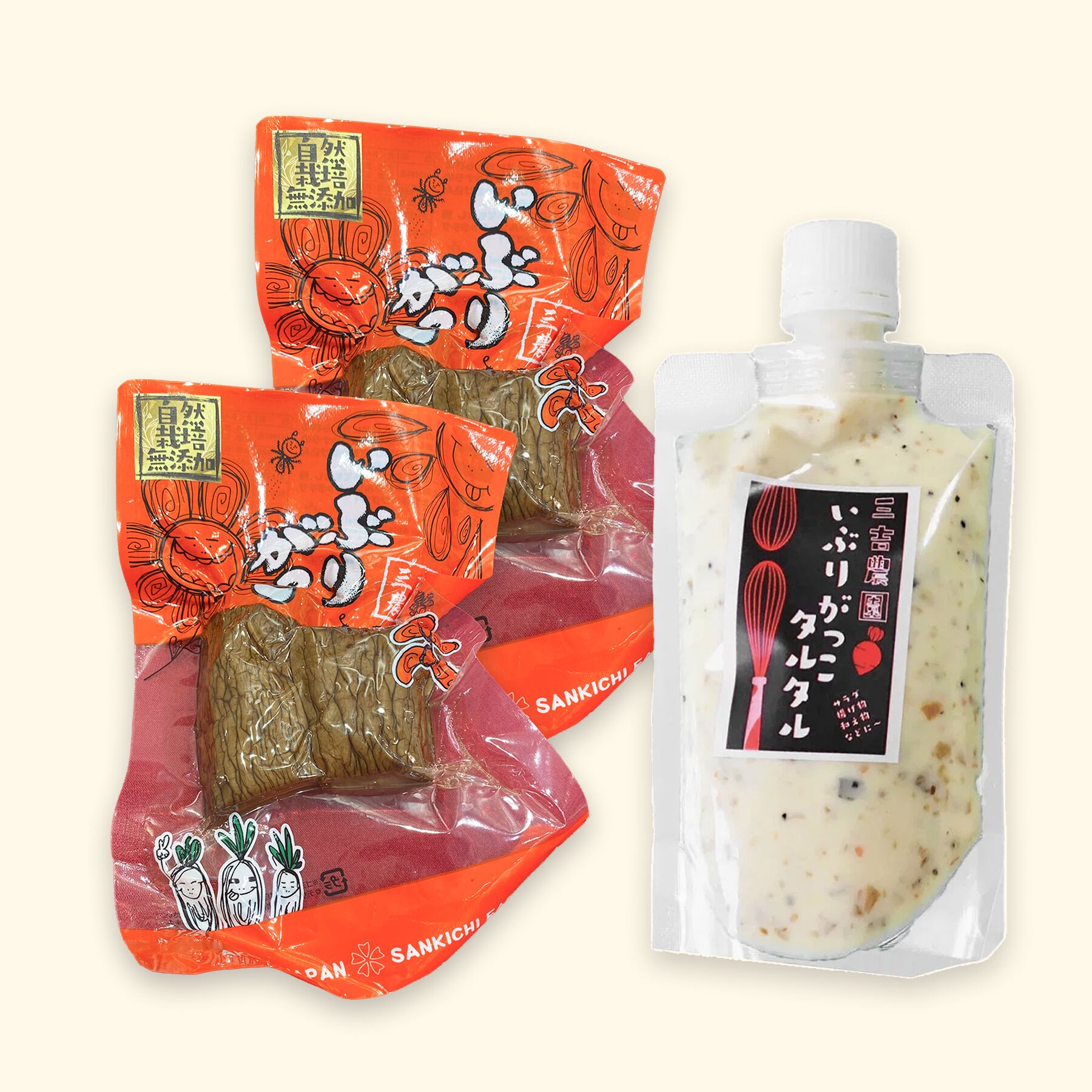 自然栽培大根を無添加で仕上げた、いぶり漬け2つのお得なセットです。