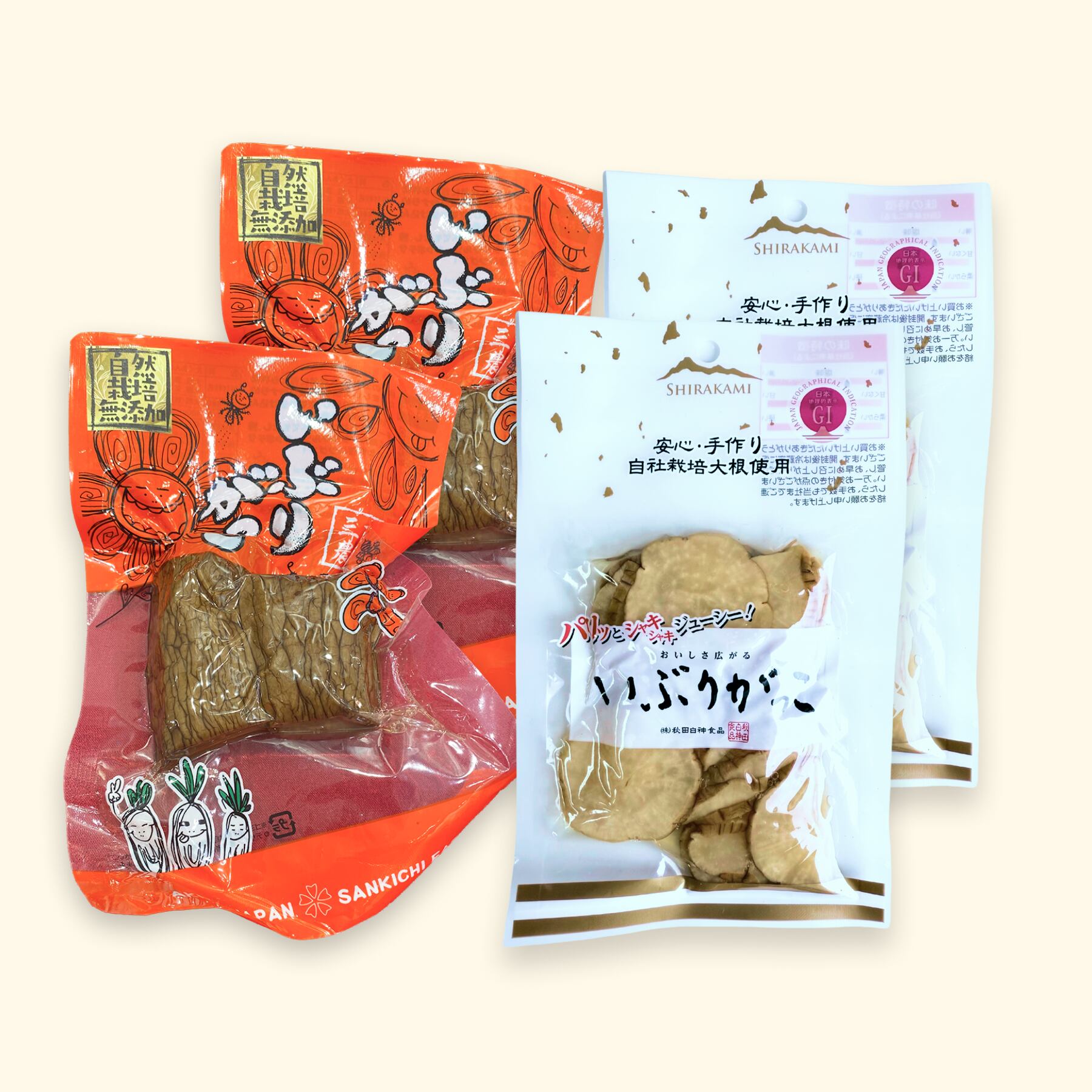 自然栽培大根を無添加で仕上げた、いぶり漬け2つのお得なセットです。